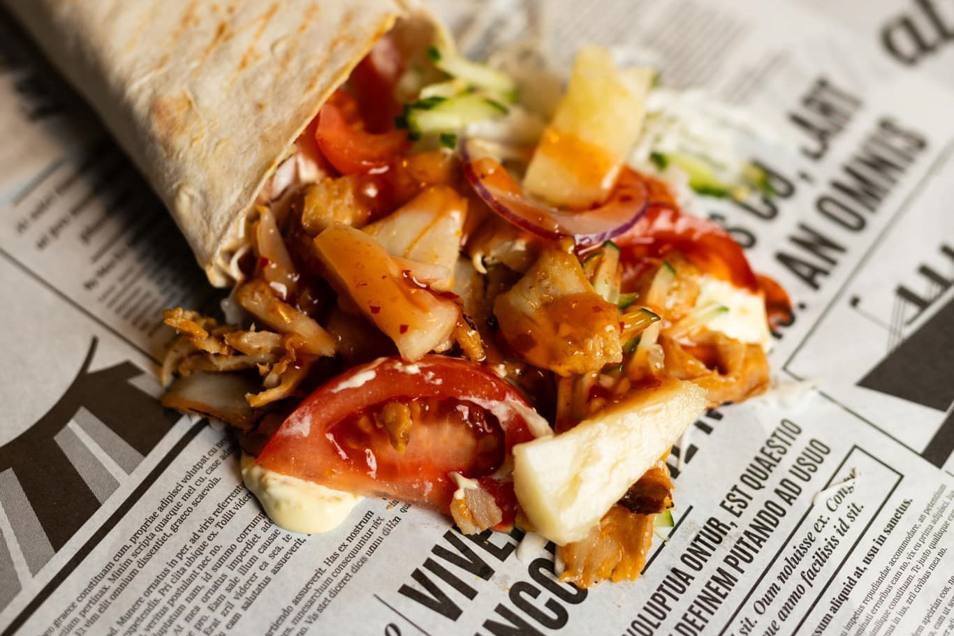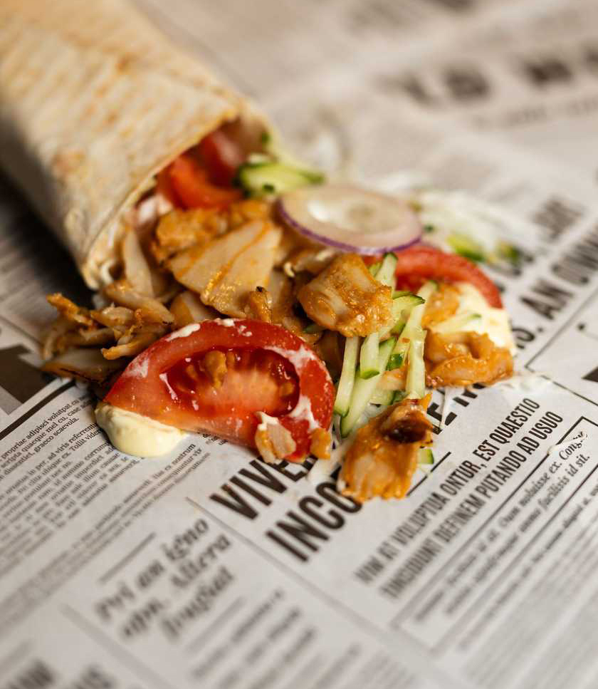 Mīksta un silta pita, kas piepildīta ar sulīgu gaļu, svaigiem dārzeņiem un aromātisku mērci. Viegls, bet sātīgs risinājums tiem, kas vēlas izbaudīt kebaba garšu kompaktā veidā.