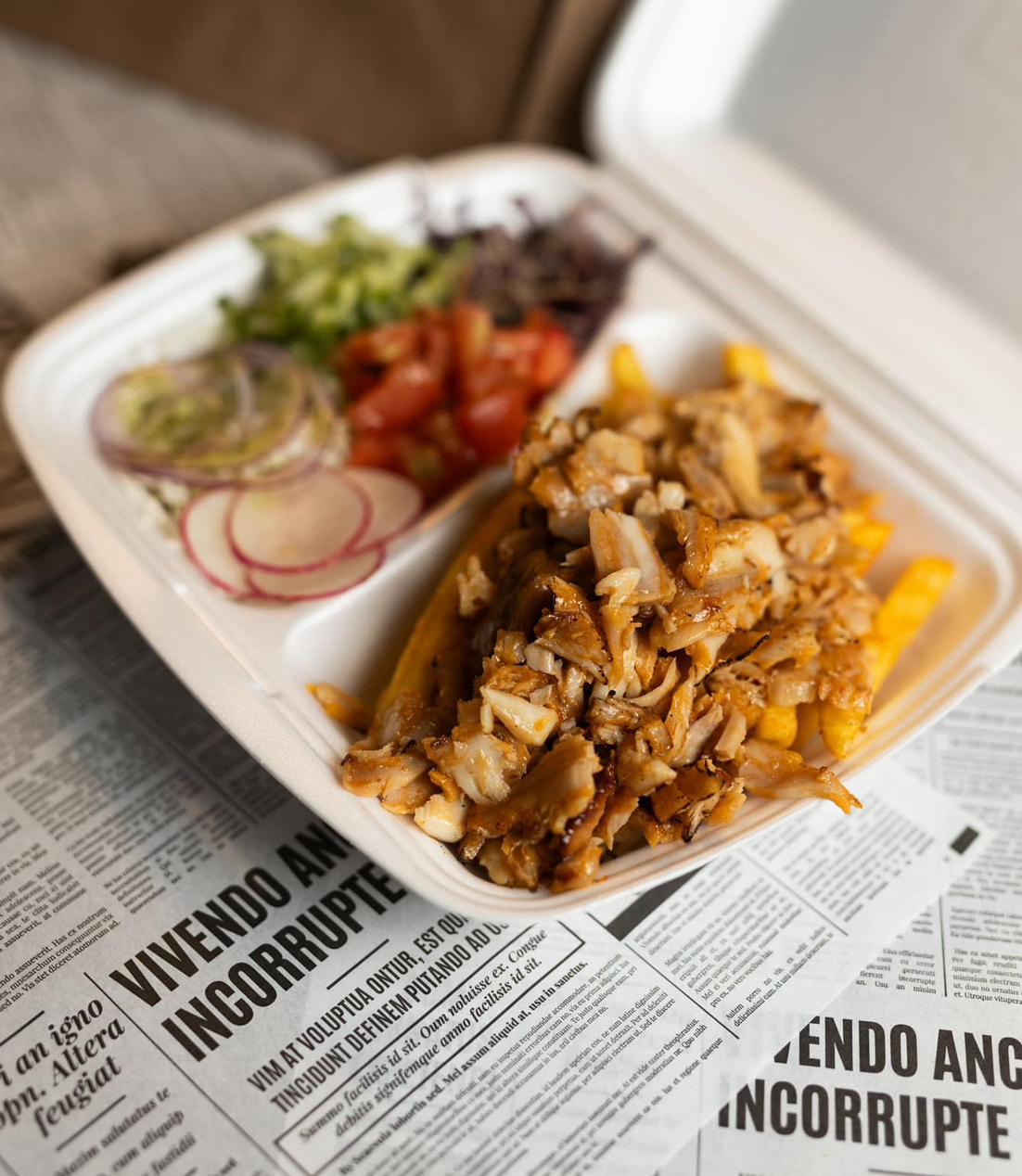 Sātīgas porcijas ar gaļu, frī kartupeļiem, svaigiem dārzeņiem un mērci pēc izvēles. Ideāli pusdienām, vakariņām vai ātrai maltītei ceļā – garšīgi un ērti!
